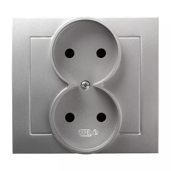 AS Gniazdo podwójne kompletne z ramką - kolor srebro