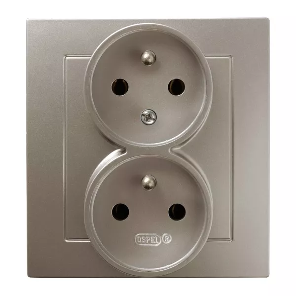 AS Gniazdo podwójne z uziemieniem z funkcją niezamienności faz, kompletne z ramką - kolor satyna light