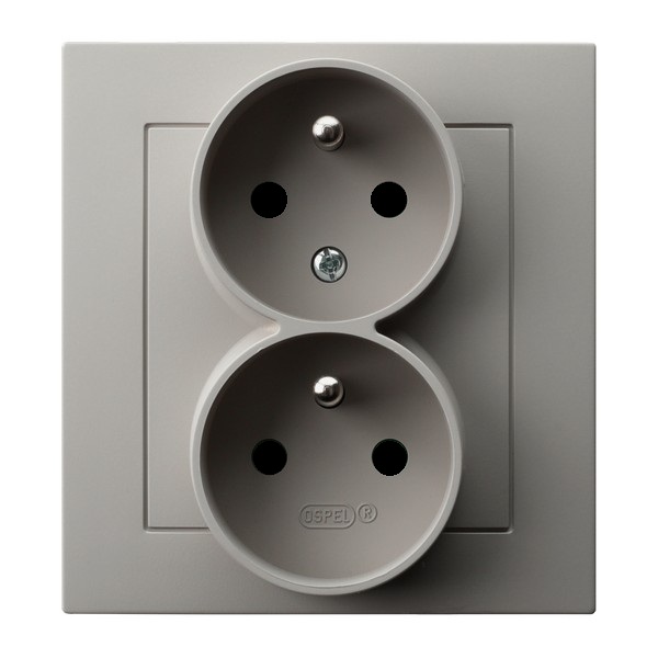 AS Gniazdo podwójne z uziemieniem z funkcją niezamienności faz, kompletne z ramką - kolor kaszmir