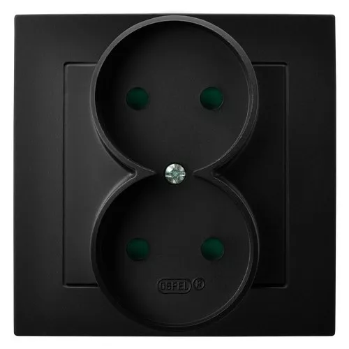 AS Gniazdo podwójne z przesłonami torów prądowych, kompletne z ramką - kolor czarny metalik
