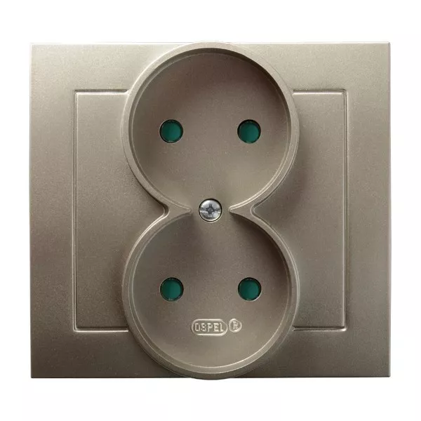 AS Gniazdo podwójne z przesłonami torów prądowych, kompletne z ramką - kolor satyna light