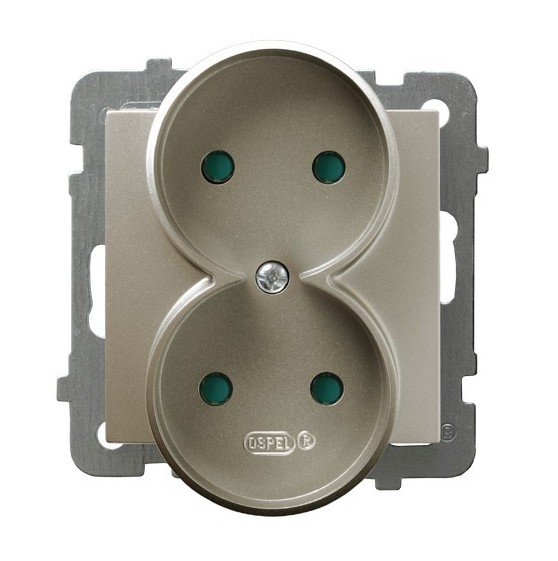 AS Gniazdo podwójne z przesłonami torów prądowych, moduł bez ramki - kolor satyna light
