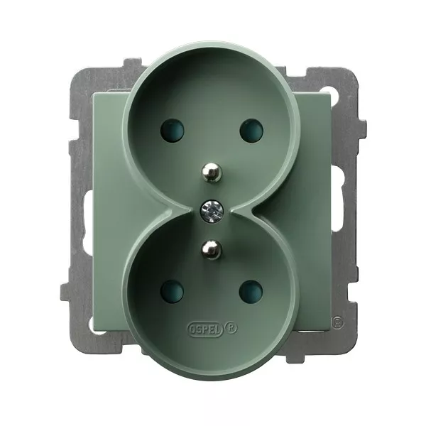 AS Gniazdo podwójne z uziemieniem z przesłonami torów prądowych, moduł bez ramki - kolor zielony mat