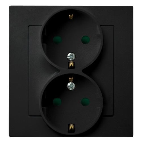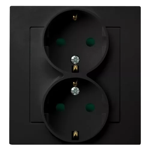 AS Gniazdo podwójne z uziemieniem schuko z przesłonami torów prądowych, kompletne z ramką - kolor czarny metalik
