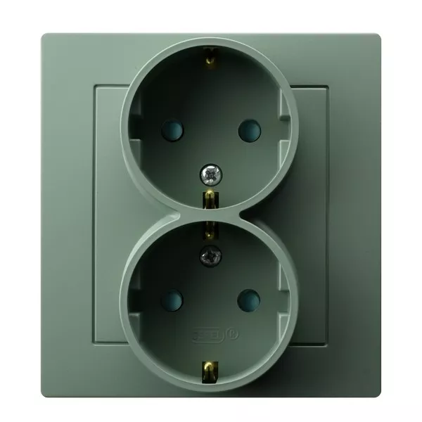AS Gniazdo podwójne z uziemieniem schuko z przesłonami torów prądowych, kompletne z ramką - kolor zielony mat