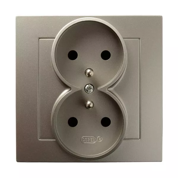 AS Gniazdo podwójne z uziemieniem kompletne z ramką - kolor satyna light