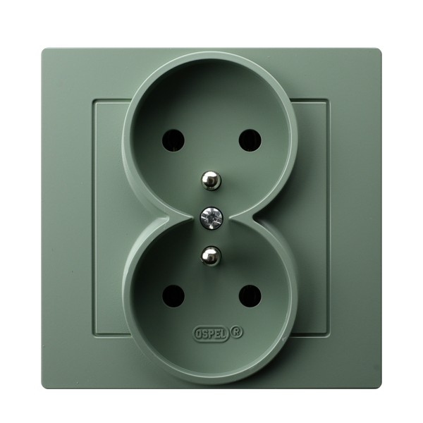 AS Gniazdo podwójne z uziemieniem kompletne z ramką - kolor zielony mat