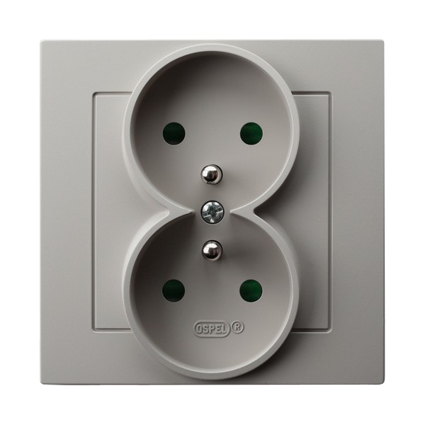 AS Gniazdo podwójne z uziemieniem z przesłonami torów prądowych, kompletne z ramką - kolor kaszmir
