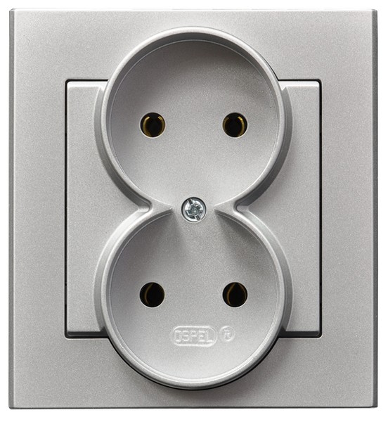 SONATA Gniazdo podwójne kompletne z ramką - kolor srebro mat