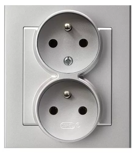SONATA Gniazdo podwójne z uziemieniem z funkcją niezamienności faz, kompletne z ramką - kolor srebro mat
