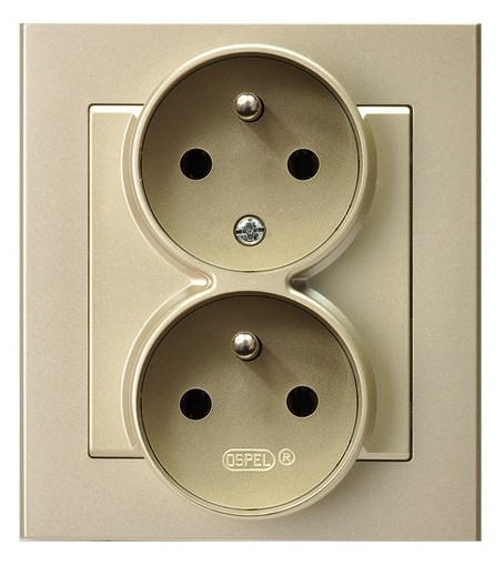 SONATA Gniazdo podwójne z uziemieniem z funkcją niezamienności faz, kompletne z ramką - kolor szampański złoty