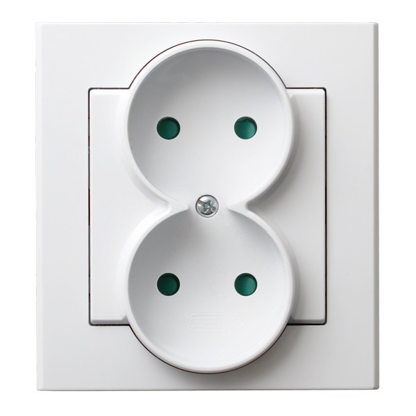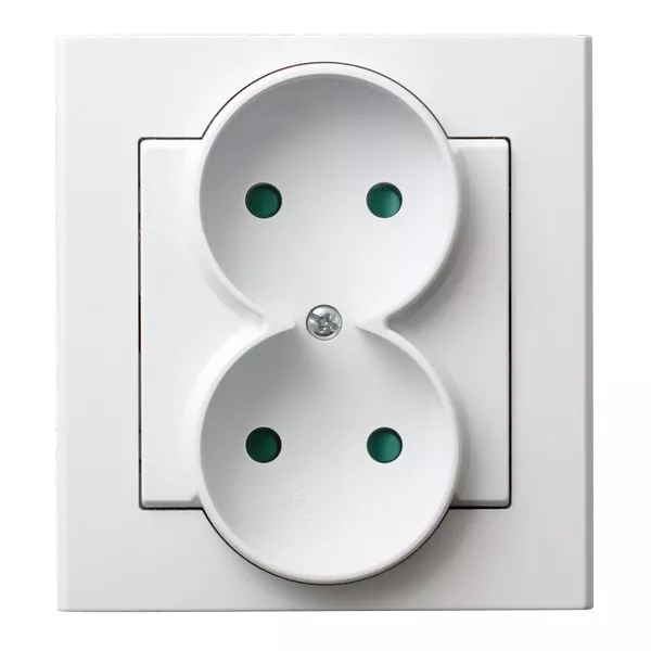 SONATA Gniazdo podwójne z przesłonami torów prądowych, kompletne z ramką - kolor biały