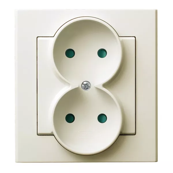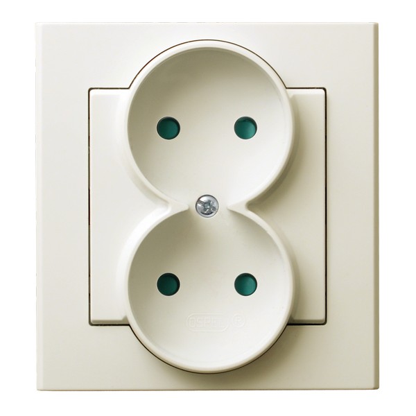SONATA Gniazdo podwójne z przesłonami torów prądowych, kompletne z ramką - kolor ecru