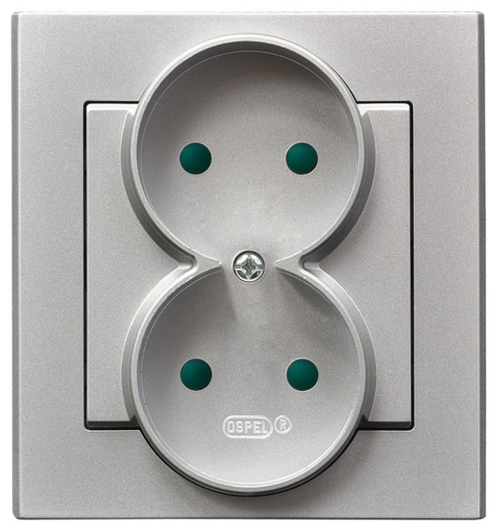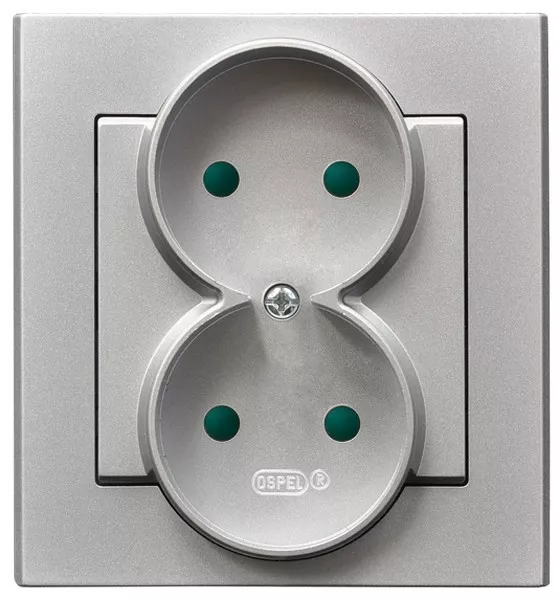 SONATA Gniazdo podwójne z przesłonami torów prądowych, kompletne z ramką - kolor srebro mat