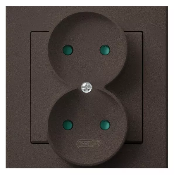 SONATA Gniazdo podwójne z przesłonami torów prądowych, kompletne z ramką - kolor czekoladowy metalik