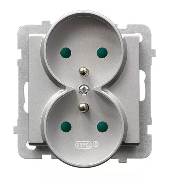 SONATA Gniazdo podwójne z uziemieniem z przesłonami torów prądowych, moduł bez ramki (do ramek 4mm) - kolor srebro mat