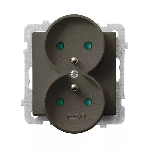 SONATA Gniazdo podwójne z uziemieniem z przesłonami torów prądowych, moduł bez ramki - kolor czekoladowy metalik