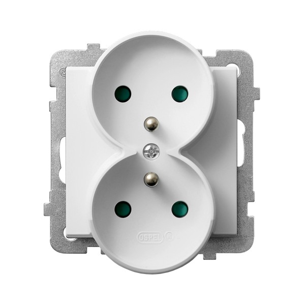SONATA Gniazdo podwójne z uziemieniem z przesłonami torów prądowych, moduł bez ramki - kolor biały mat