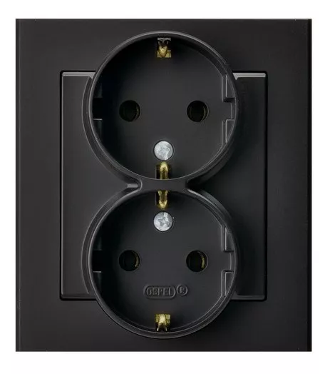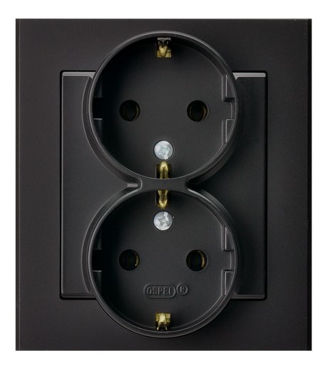 SONATA Gniazdo podwójne z uziemieniem schuko kompletne z ramką - kolor czarny matowy