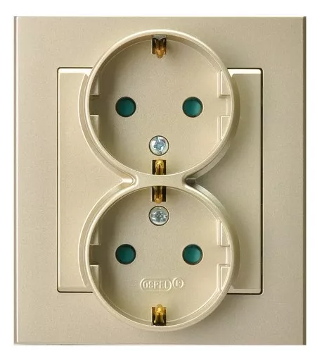 SONATA Gniazdo podwójne z uziemieniem schuko z przesłonami torów prądowych, kompletne z ramką - kolor szampański złoty