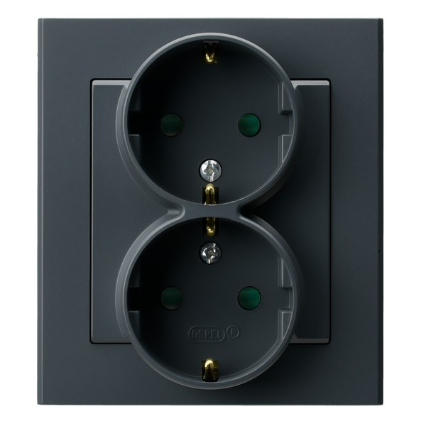 SONATA Gniazdo podwójne z uziemieniem schuko z przesłonami torów prądowych, kompletne z ramką - kolor szary grafit
