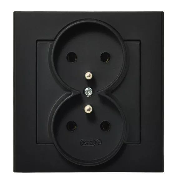SONATA Gniazdo podwójne z uziemieniem kompletne z ramką - kolor czarny matowy
