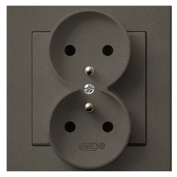 SONATA Gniazdo podwójne z uziemieniem kompletne z ramką - kolor czekoladowy metalik