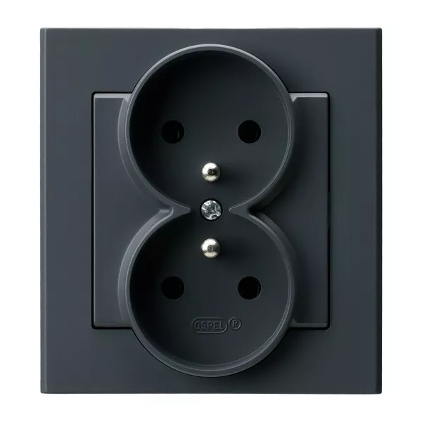 SONATA Gniazdo podwójne z uziemieniem kompletne z ramką - kolor szary grafit