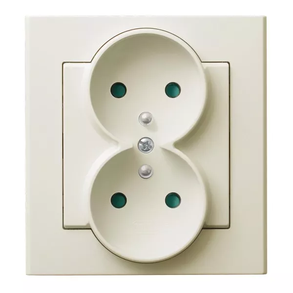 SONATA Gniazdo podwójne z uziemieniem z przesłonami torów prądowych, kompletne z ramką - kolor ecru