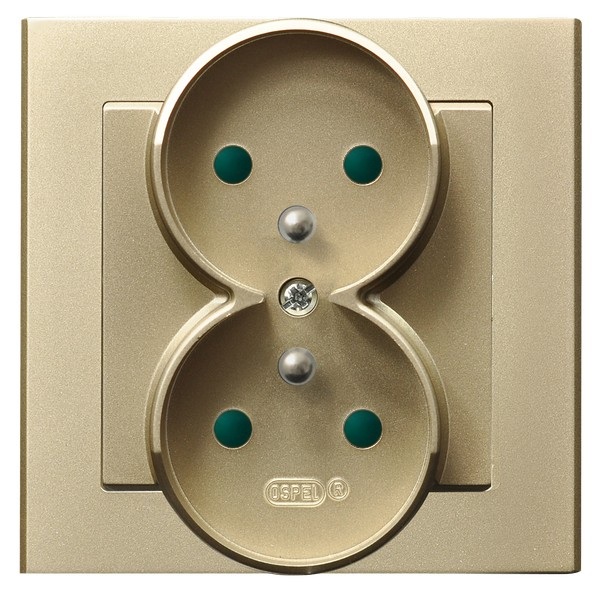 SONATA Gniazdo podwójne z uziemieniem z przesłonami torów prądowych, kompletne z ramką - kolor szampański złoty