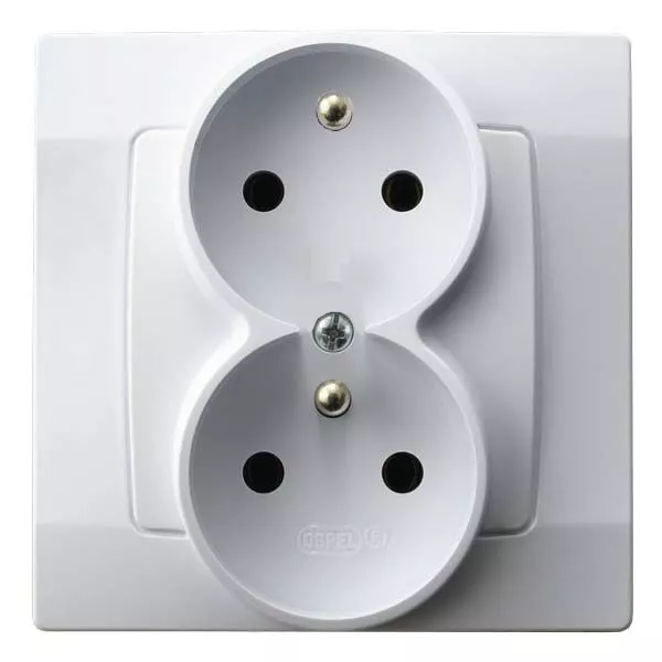 KARO Gniazdo podwójne z uziemieniem z funkcją niezamienności faz, kompletne z ramką - kolor biały