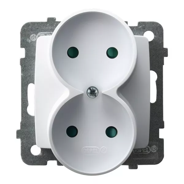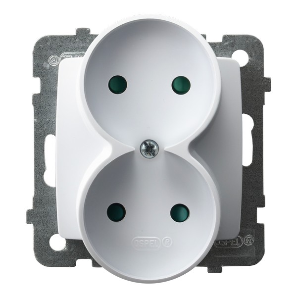 KARO Gniazdo podwójne z przesłonami torów prądowych, moduł bez ramki - kolor biały