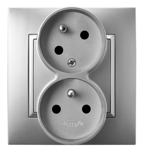 ARIA Gniazdo podwójne z uziemieniem z funkcją niezamienności faz, kompletne z ramką - kolor srebro