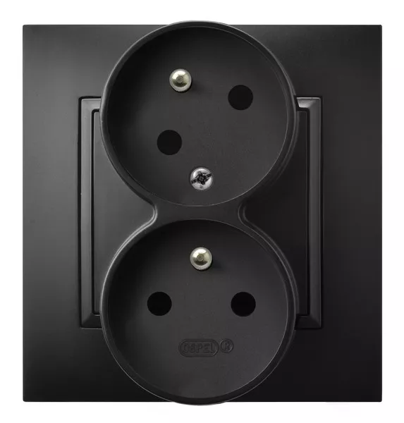 ARIA Gniazdo podwójne z uziemieniem z funkcją niezamienności faz, kompletne z ramką - kolor czarny matowy