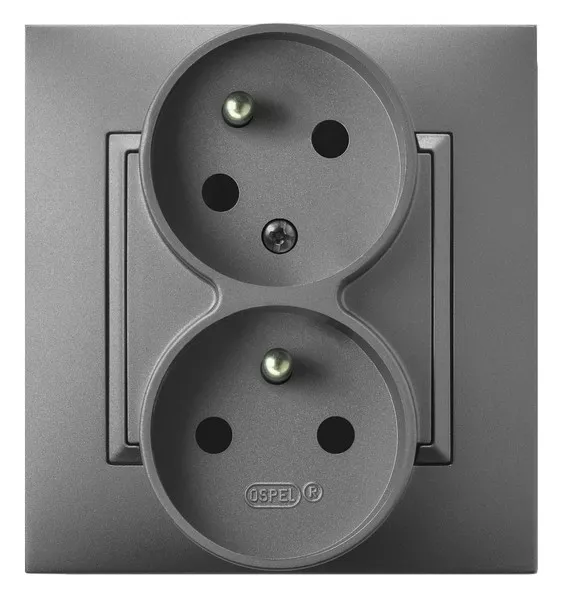 ARIA Gniazdo podwójne z uziemieniem z funkcją niezamienności faz, kompletne z ramką - kolor szary mat