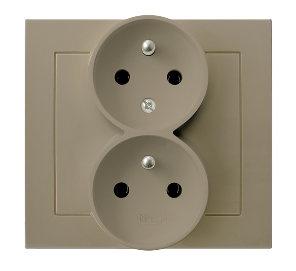 KIER Gniazdo podwójne z uziemieniem z funkcją niezamienności faz - kolor beżowy
