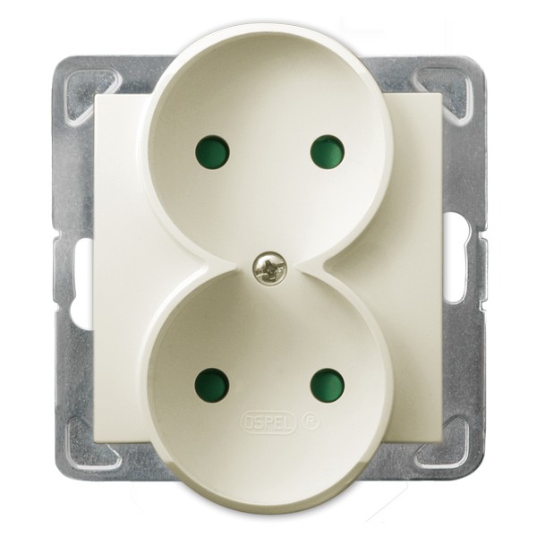 IMPRESJA Gniazdo podwójne z przesłonami torów prądowych, moduł bez ramki - kolor ecru