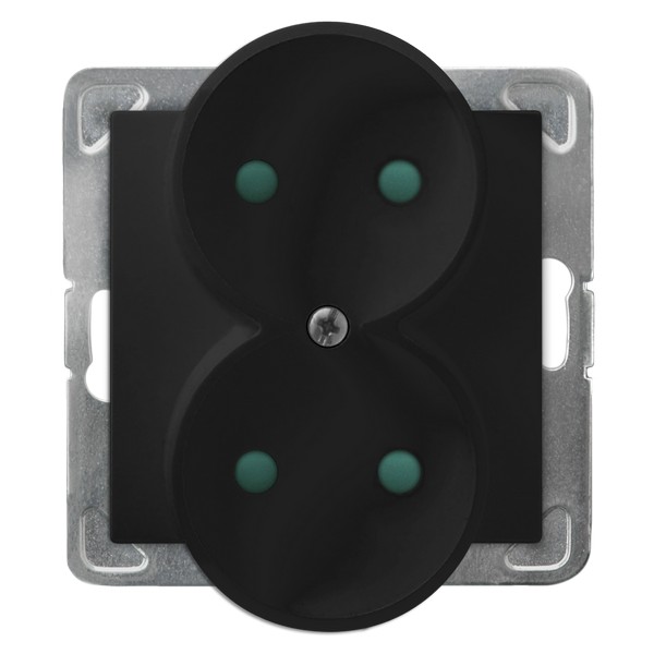 IMPRESJA Gniazdo podwójne z przesłonami torów prądowych, moduł bez ramki - kolor czarny matowy