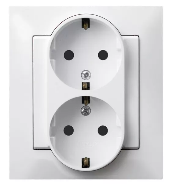 IMPRESJA Gniazdo podwójne z uziemieniem schuko kompletne z ramką - kolor biały