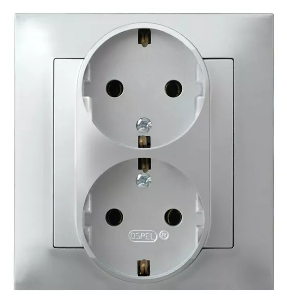 IMPRESJA Gniazdo podwójne z uziemieniem schuko kompletne z ramką - kolor srebro