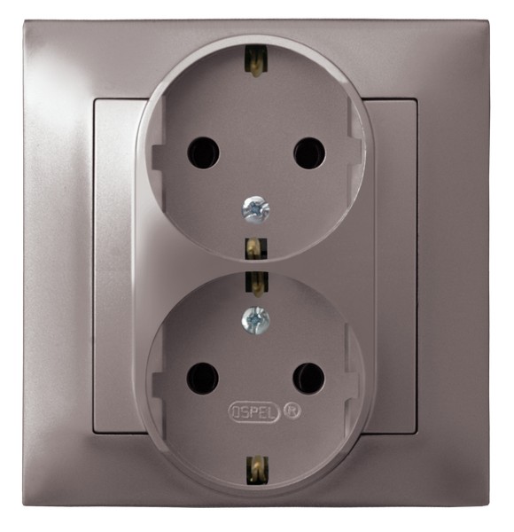 IMPRESJA Gniazdo podwójne z uziemieniem schuko kompletne z ramką - kolor tytan