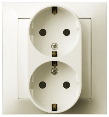 IMPRESJA Gniazdo podwójne z uziemieniem schuko kompletne z ramką - kolor ecru
