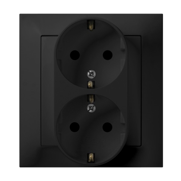 IMPRESJA Gniazdo podwójne z uziemieniem schuko kompletne z ramką - kolor czarny matowy