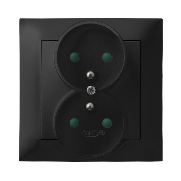 IMPRESJA Gniazdo podwójne z uziemieniem z przesłonami torów prądowych, kompletne z ramką - kolor czarny matowy