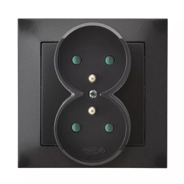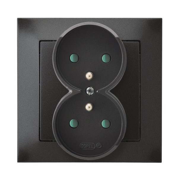 IMPRESJA Gniazdo podwójne z uziemieniem z przesłonami torów prądowych, kompletne z ramką - kolor antracyt