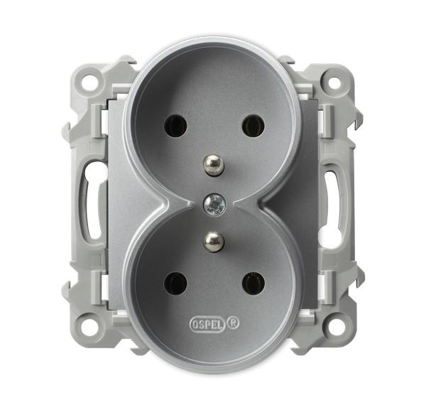 SZAFIR Gniazdo podwójne z uziemieniem moduł bez ramki - kolor srebro
