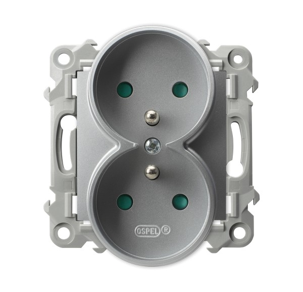SZAFIR Gniazdo podwójne z uziemieniem z przesłonami torów prądowych, moduł bez ramki - kolor srebro