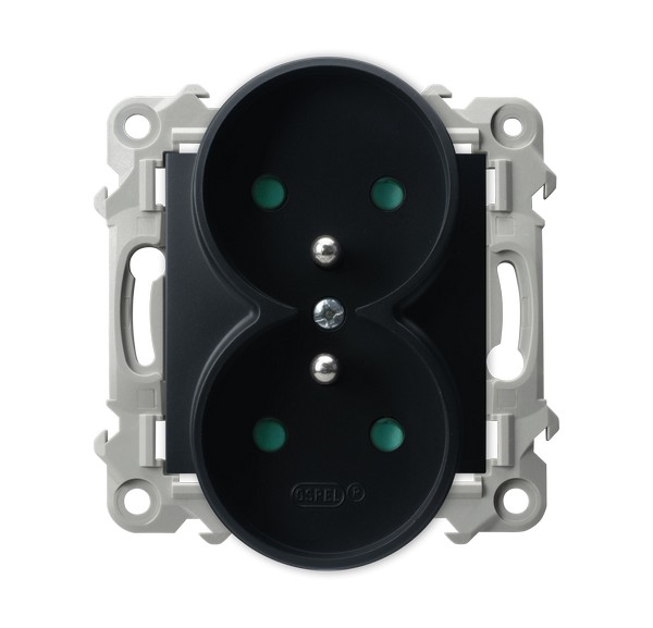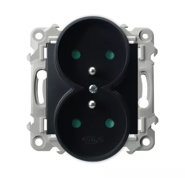 SZAFIR Gniazdo podwójne z uziemieniem z przesłonami torów prądowych, moduł bez ramki - kolor czarny matowy