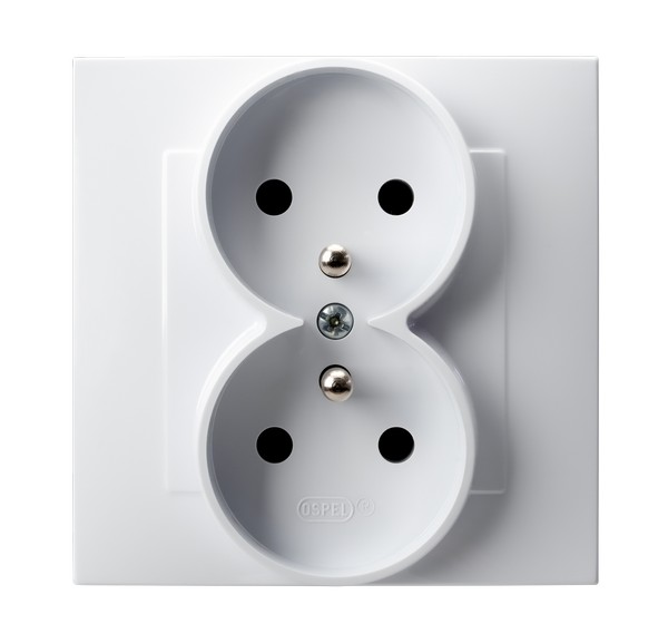SZAFIR Gniazdo podwójne z uziemieniem kompletne z ramką - kolor biały