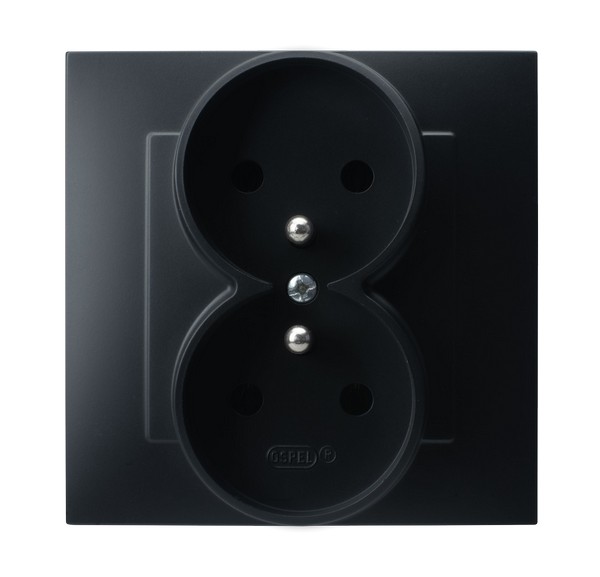 SZAFIR Gniazdo podwójne z uziemieniem kompletne z ramką - kolor czarny matowy